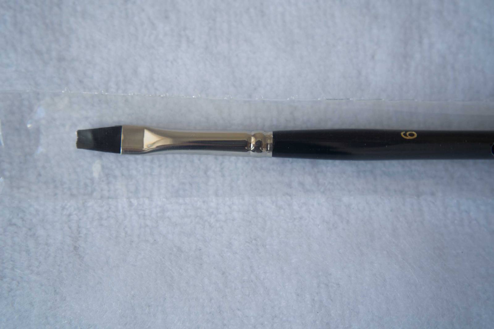 Raven čopič št.6 za nanašanje gradilnih gelov. Poreklo: Nemčija.