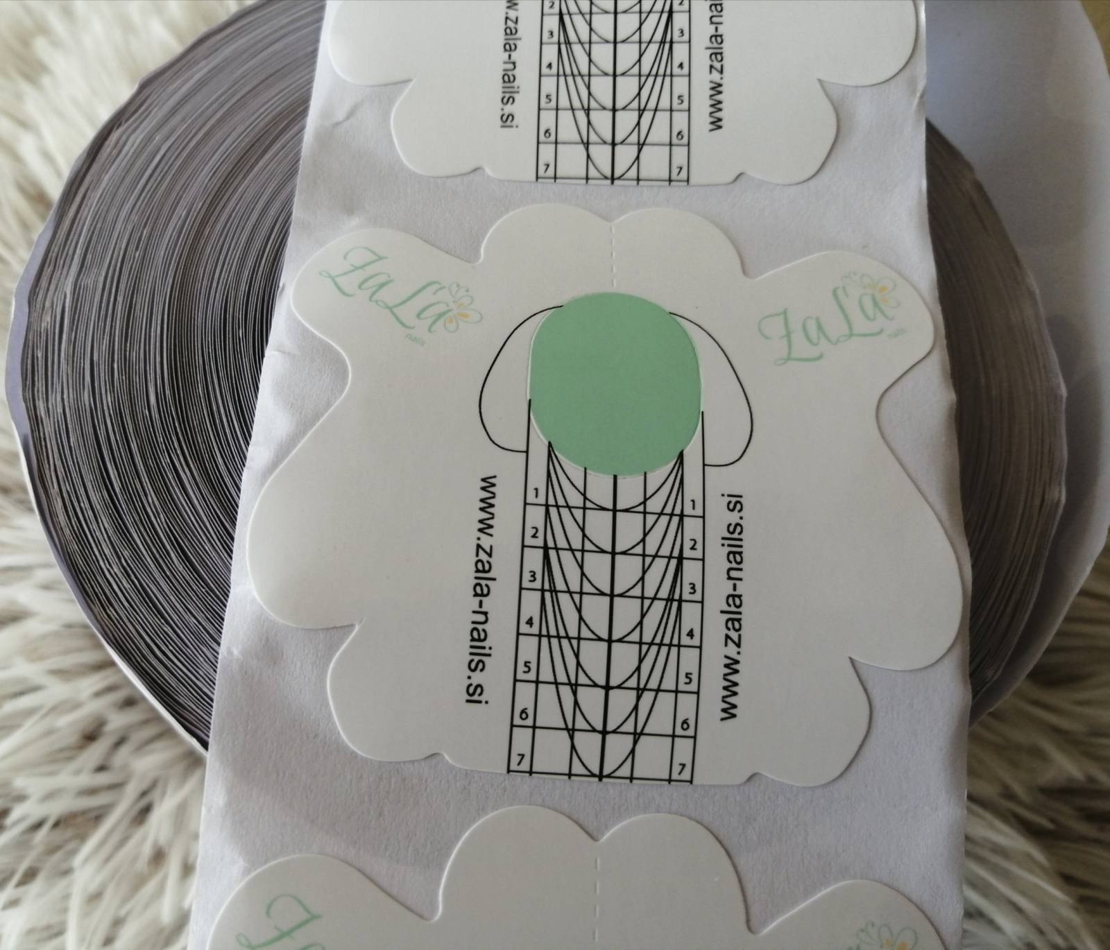 Šablone za nohte uporabljamo za podaljševanje nohtov z gelom. Šablone so iz debelejšega materiala, kar zagotavlja odlične rezultate. Količina:100 šablon.