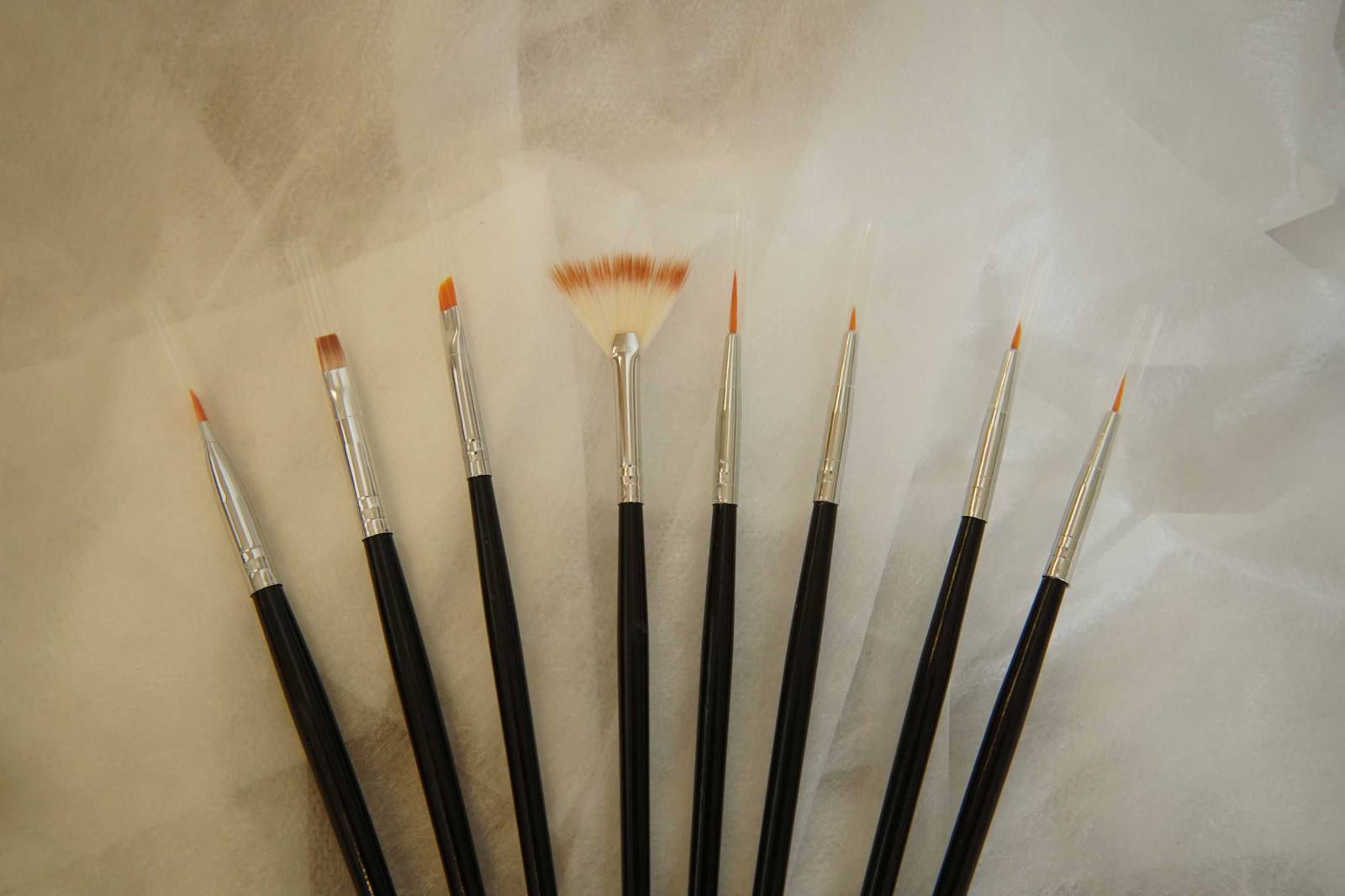 Set osmih čopičev, namenjenih za nail art iz sintetičnih ščetin.